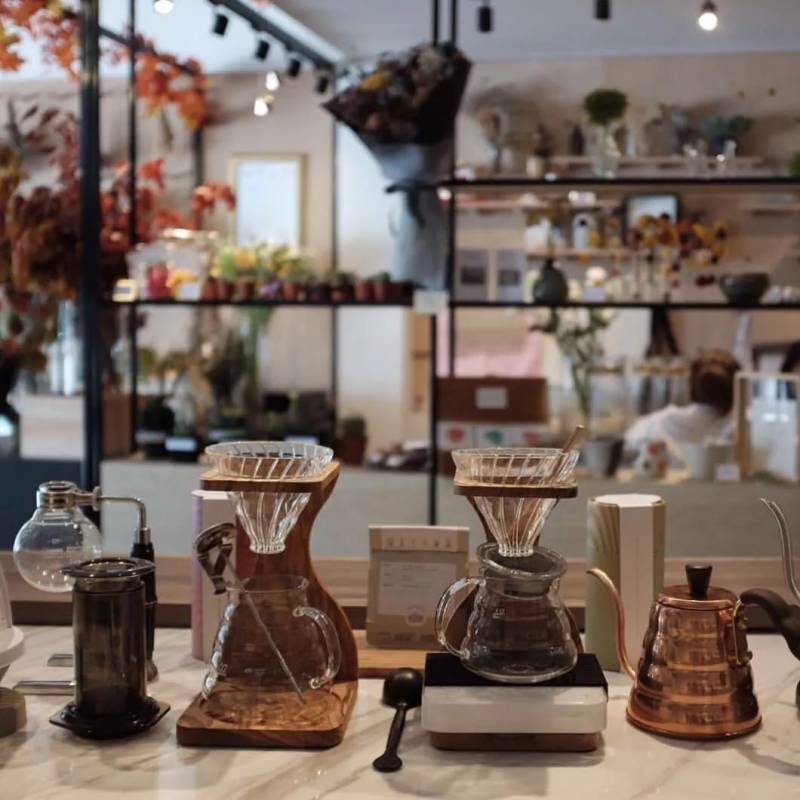 位于东海岸的一家咖啡馆,店面看起来很大但是有一半空间给了鲜花店,不过鲜花的香味没有盖住咖啡香,反而为咖啡馆增添了不少情调,让人喜欢上这种混搭。
