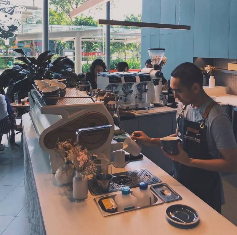 喜欢的理由当然还有他家的咖啡,虽然没有自己的混合烘焙咖啡豆,却和新加坡乃至全世界的很多知名咖啡有合作,比如Common Man 和 Homeground。