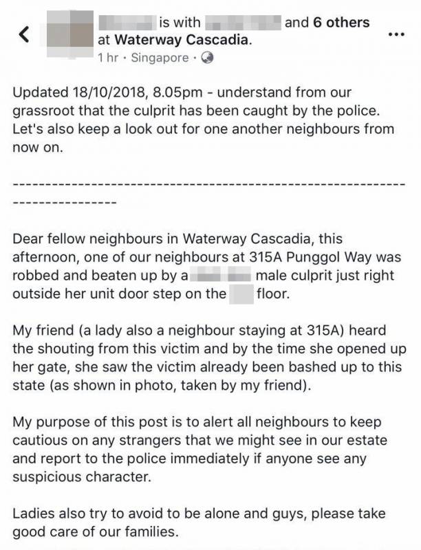 广告他在贴文中写道,一名居住在榜鹅大道第315A座组屋的邻居在自家门前遭一名男子抢劫,并且打伤。该名网民说,他一名住在同座组屋的朋友听到受害人的叫喊声时,打开门一看,受害人已经被打伤。