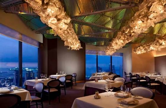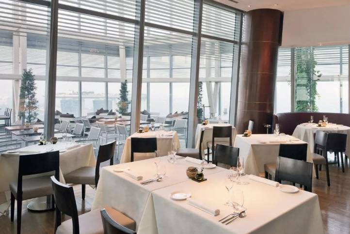 餐厅最大特点是菜肴由两个表演厨房递出,而滨海湾和新加坡中央商务区的视野无可匹敌。