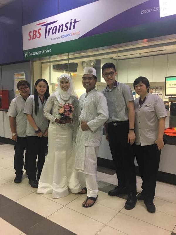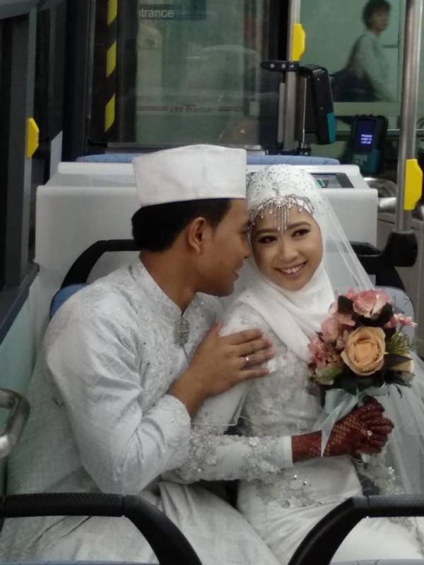 新捷运星期四(18日)在Facebook张贴两名巴士车长,29岁的Siti Nur Farina以及28岁Mohammad Firdaus Jamli,在文礼巴士转换站拍摄的婚纱照。新捷运在帖文中说,巴士车长的工作为两人牵起红线,真挚为这对上个月喜结连理的新人献上祝福。