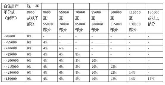 所谓当年价值是该财产在一年内预期可收受的租金而言,计算方法是年租金减去物业管理、家具以及维修的费用。商业地产和土地房产税10%。个人自住房产税通常4%,出租房屋从10%起,最高税率到20%。