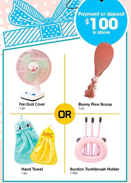 抽奖可能是看运气,但是,礼物可是实实在在的!只要消费满100新币就能得到下面这些萌到冒泡的小礼物~