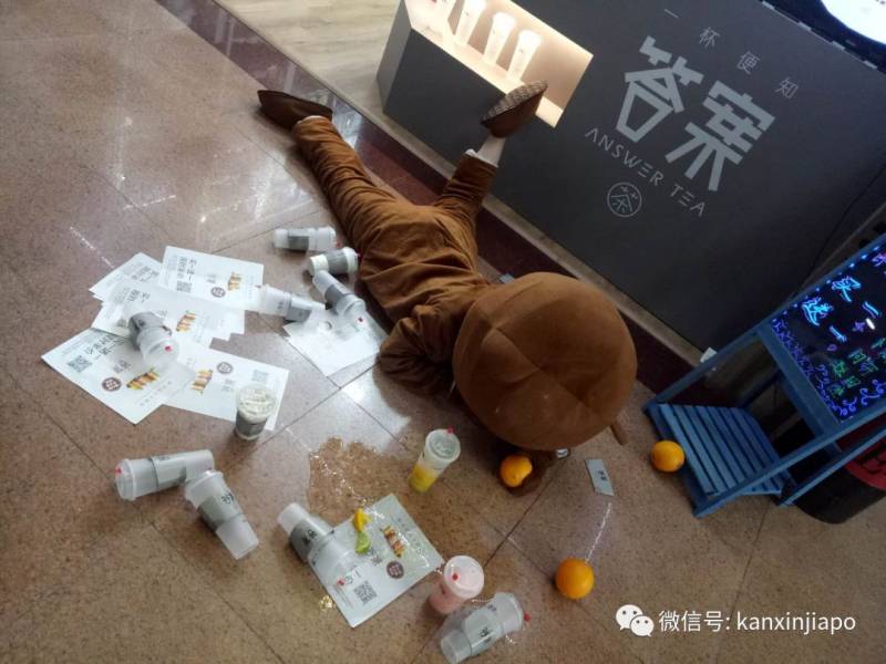 这应该不是摔,是被打了吧,身上那一袋水饺应该是被员工扔的。