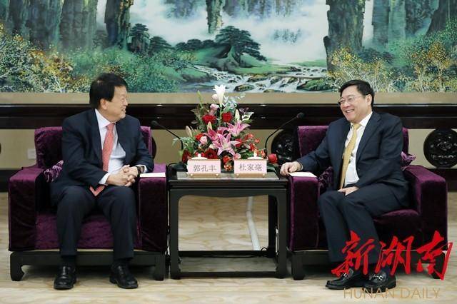 10月19日下午,湖南省委书记、省人大常委会主任杜家毫在长沙会见了新加坡丰益国际集团董事局主席、益海嘉里集团董事长郭孔丰一行。湖南日报记者 罗新国 摄