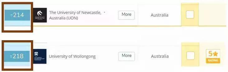 广告目前,新加坡PSB学院合作的众多大学中,澳洲纽卡斯尔大学和伍伦贡大学均得到了中国教育部的认证。根据2018年6月7日颁布的QS世界大学排名,澳洲纽卡斯尔大学在QS世界排名为214位,澳洲伍伦贡大学排名218位。