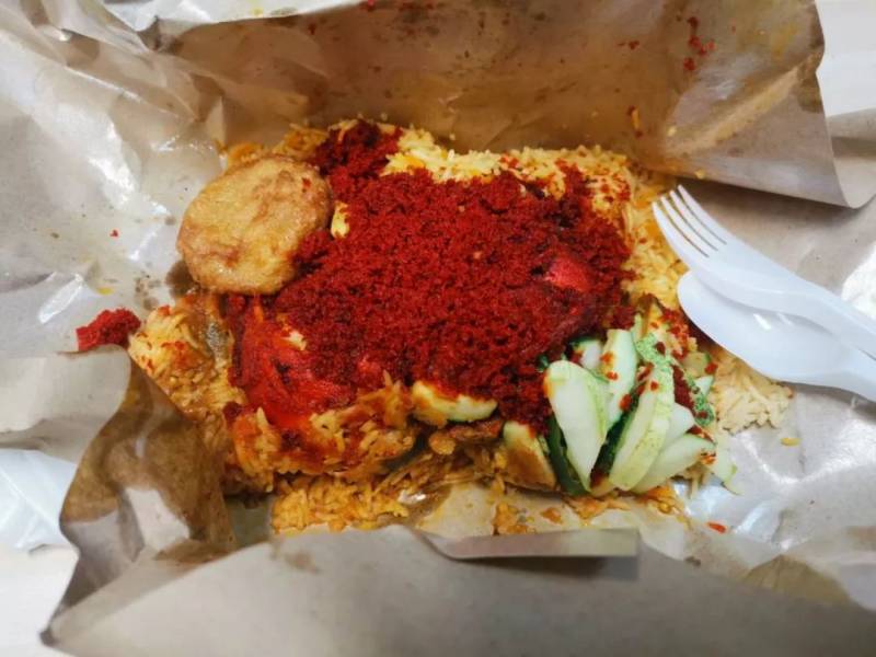 某种马来炸鸡饭,超级大一份,有种特殊的香料味