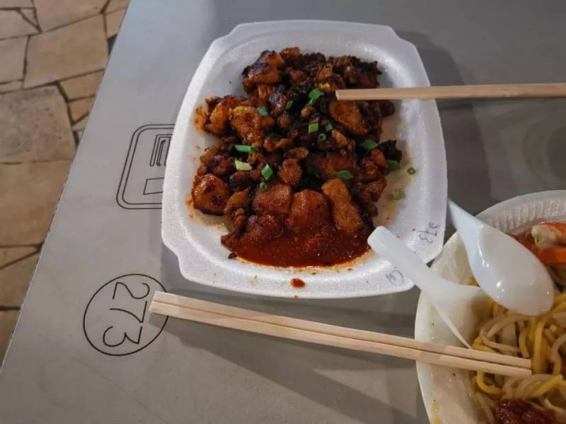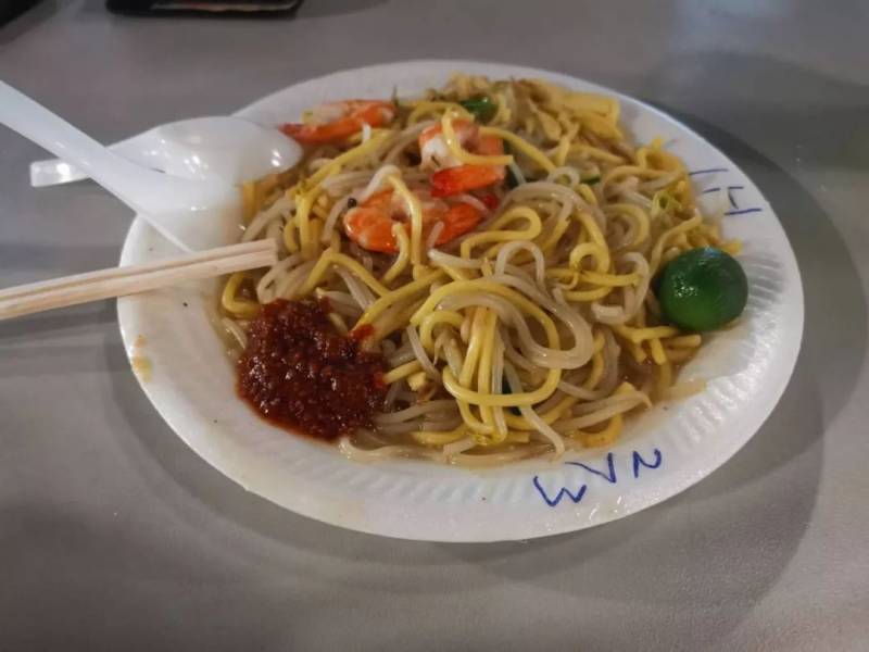 一种海鲜炒面,挤小柠檬上去很清新,甜辣酱很好吃