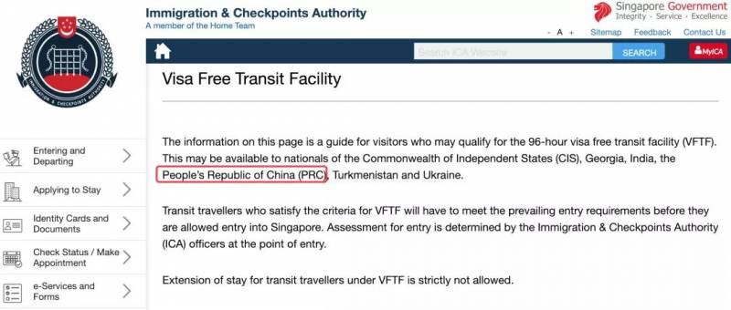 自2019年1月28日起,在前往第三国家或从第三国家出发需过境新加坡时,符合以下条件的中国公民均可享受 96 小时VFTF: