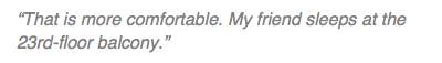 还有网友分享,自己的朋友睡在位于23层楼的阳台上...