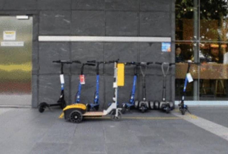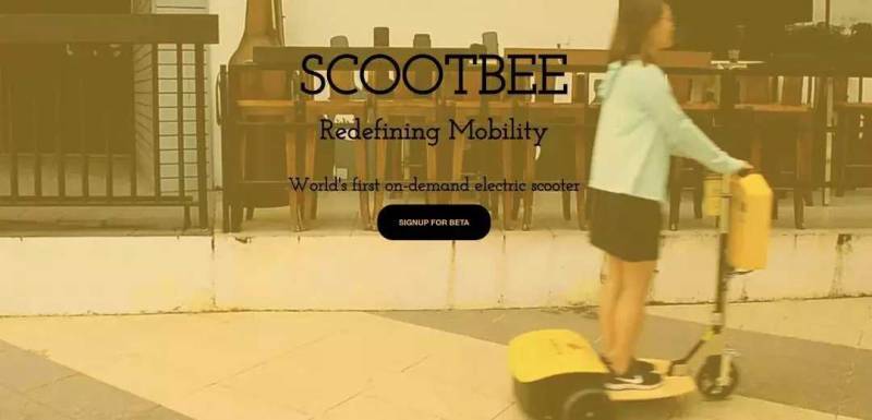 下面我们来介绍这个叫scootbee的小黄车,虽然外观有点朴素,但却非常智能的共享电动滑板车。