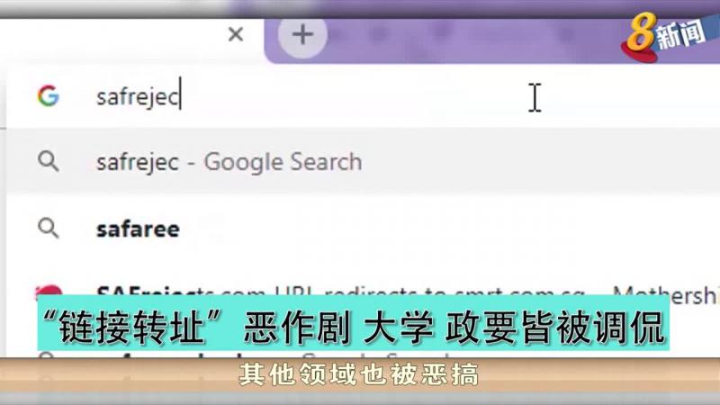 网上近来出现“连结转址”恶作剧。打上nusrejects.com网址,意思就是报读国大被拒绝的人,连结就会把你带到南大的网站。也有人不甘示弱,购买了nturejects.com的网址,把它连结到国大网站。
