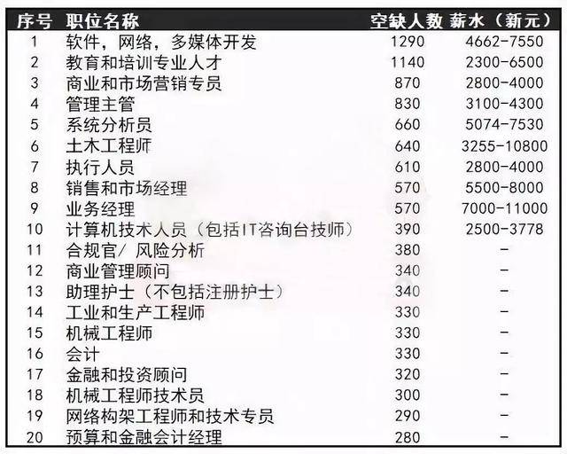 1新加坡什么职位最缺人?!