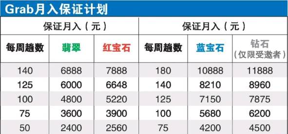 根据Grab网站上的资料,司机将分为四个等级,月入则以每周趟数为标准。