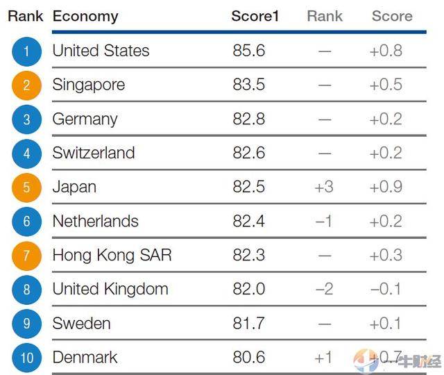 然而令人意外的是,已经连续九年蝉联首位的瑞士,在2018年中首次跌出了前三,位于第四位。而日本排在了第五,中国香港第六、英国第七、瑞典第八、丹麦第九,而荷兰排在了第十。