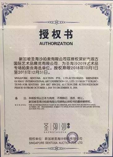 新加坡圣淘沙岛拍卖有限公司是一个得到新加坡政府批准审计和注册的大型综合性拍卖公司。公司植根于国际文化艺术收藏,与欧洲、日本、美国和其他国际知名艺术机构合作。新加坡圣淘沙岛拍卖有限公司代表了国际多元文化的整合,承担全球中国艺术收藏顾问一个重要的角色,其充分的发挥了全球市场的优势,开始发力构建中国与全球客户的艺术品交易,为世界各地艺术品收藏家提供最丰富的艺术盛宴。鉴定咨询:18929354369(微信同号)