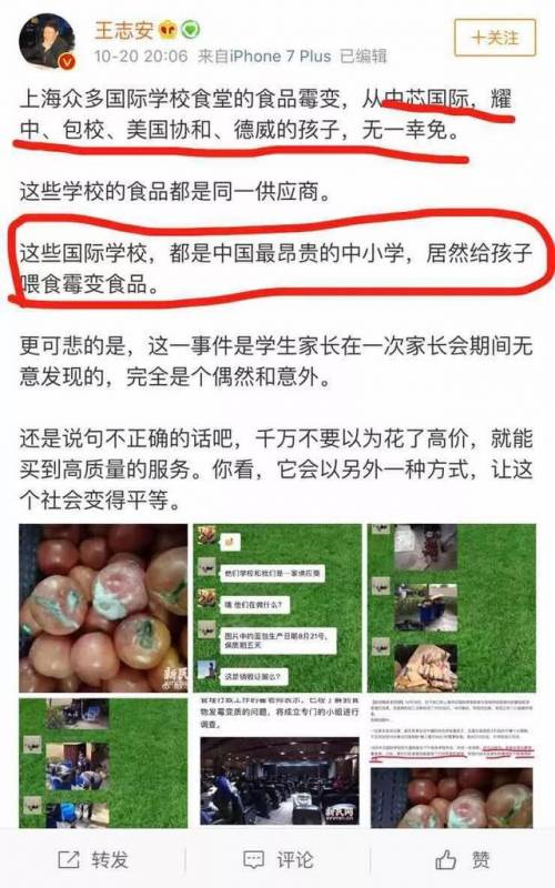 这是今天早上媒体行业大v发的一篇微博,事关孩子食品安全问题,转发量迅速走高。
