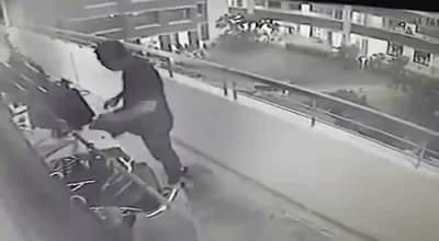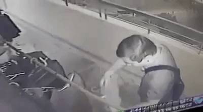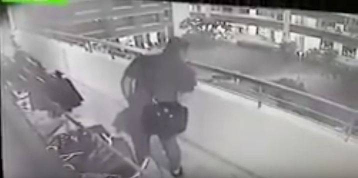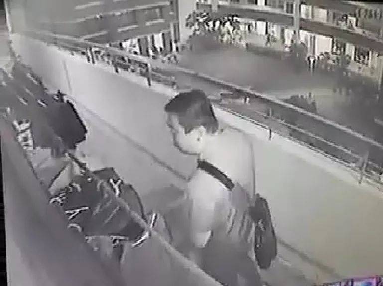 视频是由家门口安装的监控拍摄下来的,画面中,疑似是一名中年男子,背着斜挎包,停留在组屋门口晾晒衣服的地方。