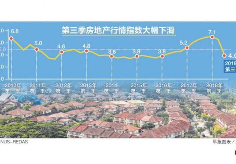 由新加坡产业发展商公会(REDAS)和新加坡国立大学发布的最新一季房地产行情指数(Real Estate Sentiment Index,简称RESI)显示,今年第三季的综合行情指数(Composite Sentiment Index)从第二季的6.6大幅下滑至4。