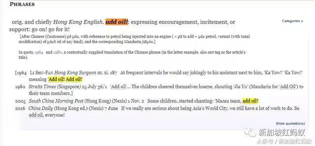 红蚂蚁不是开玩笑,中式英语“add oil!”(加油!)被列入了世界最权威的《牛津英语词典》(Oxford English Dictionary,简称OED)之一。