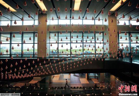 资料图片:2012年7月4日,新加坡樟宜国际机场,人们欣赏一个巨大的动力结构。