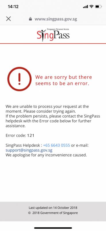 于是电话询问了Singpass的客服人员,目前应用程序处于刚开始使用阶段,还有很多不完善的地方,使用人员过多等原因,所以网络方面出现问题,工作人员已经在处理了。