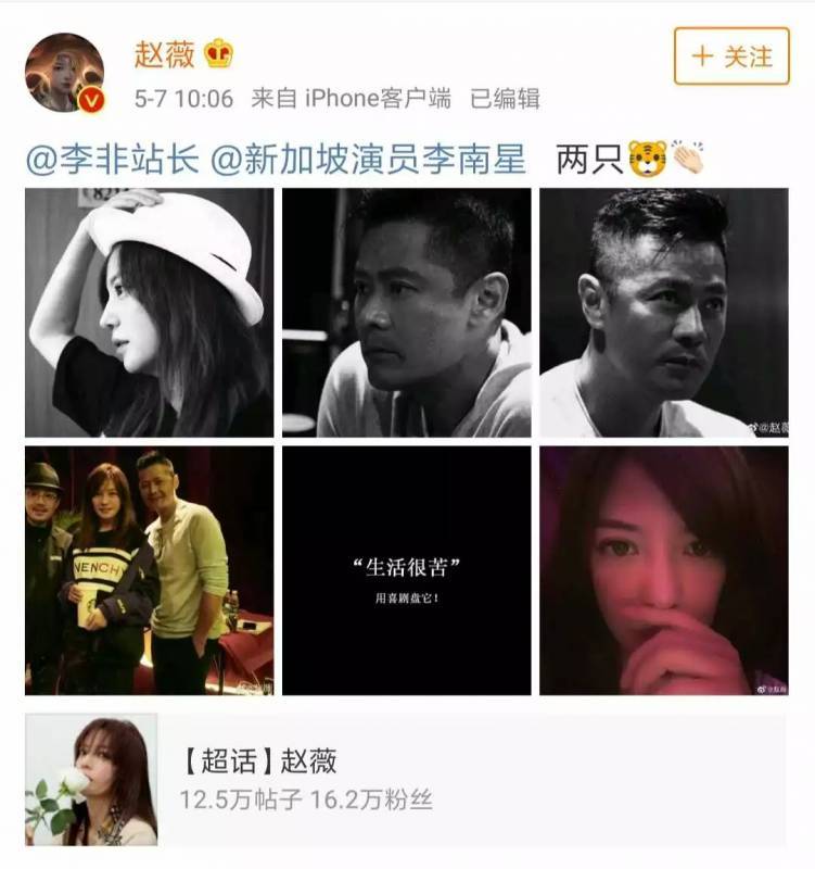 椰子前几天大晚上睡不着 在instagram上冲浪 竟然看到了赵薇探班《两只老虎》 李南星、李非的新闻 能让赵薇晒出来的明星 并且连续打卡了ins和微博两大平台 咖位想必不小 椰子以为自己发现了大新闻 赶紧去百度谷歌了一下 然后惊呆了