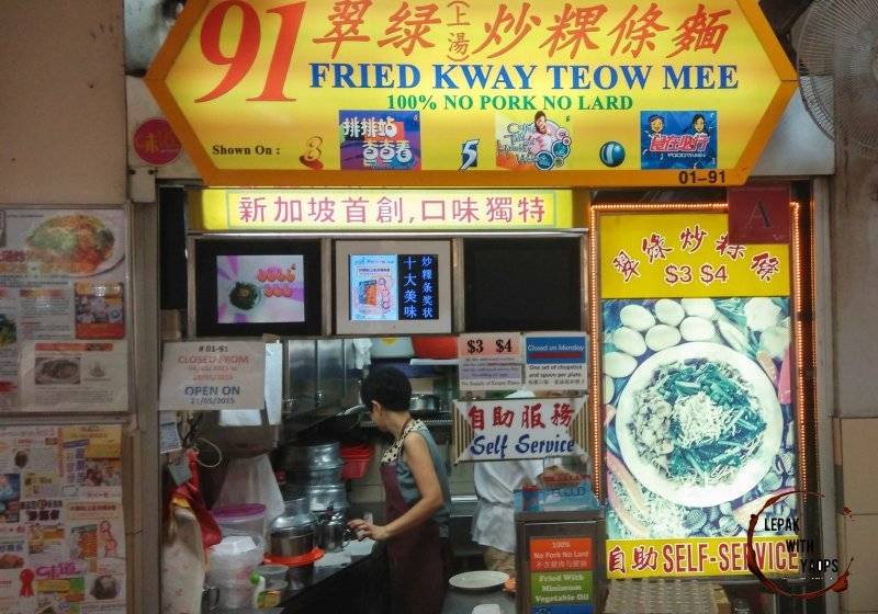 炒粿条是新马的本地美食,商场食阁、熟食中心随处可见。 91 Fried Kway Teow Mee 91 翠绿炒粿条面很受欢迎的炒粿条跟传统的有点不一样哦!传统炒粿条除了有豆芽鸡蛋,更重要的是有腊肠、鱼饼和猪油渣这类配料,非常高热量和油腻!然而这家炒粿条不含猪肉猪油,还会铺一大片菜心在粿条上,看起来健康又美味!最重要的是一盘只需新币4块!