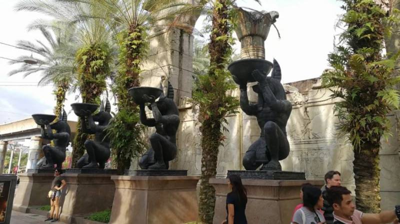 景区正门处就是最经典的“Universal studio” 标志,入口处是好莱坞大道,走到尽头就是正式的园区,纽约、古埃及、失落的世界、马达加斯加等几个主题区环成一个圈,不同主题区有自己独特的建筑风格。里面的游乐设施,和活动也都是相关主题的。