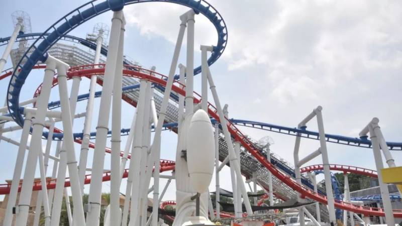 太空堡垒机械战队是有两两条过山车轨道的,一条红轨一条灰轨,灰轨的是悬挂式过山车,要比红轨刺激的多,这个排起队来也是要比红轨绝望。对啦,这两个都是不设单独游客通道的,排队真的是绝望到爆,没有一个多小时是排不上的,而且这个项目排队前就需要把个人物品存起来,就一个人傻站着排队,这个时候就真的体现出来买一张快捷票的优点了…….