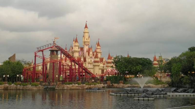 最后在灰轨过山车那儿也是有件蛮有趣的事儿,那会儿离闭院还有一个小时,我也没有什么地方可以逛了,索性就去排灰轨了,一次都不玩的话确实有些惋惜。排了没多久就开始下雨了,设备停运,排队的人大多都走了,最后只剩下20几个人。耐心的等待换来的当然是雨停啦,最后就是这么坐着湿漉漉的座椅完成了我在环球影城的最后一个项目,这个时候环球影城里的人已经不多了,比较安静,适合慢慢逛,又绕找小路走了一圈才离开,还是蛮不舍的!