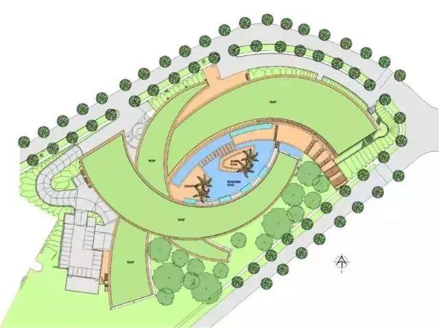 为坚守总规划的初衷,CPG公司在山谷自然区中辟出一块教学地,在建筑造型中景观元素的置入亦发挥了重要作用。