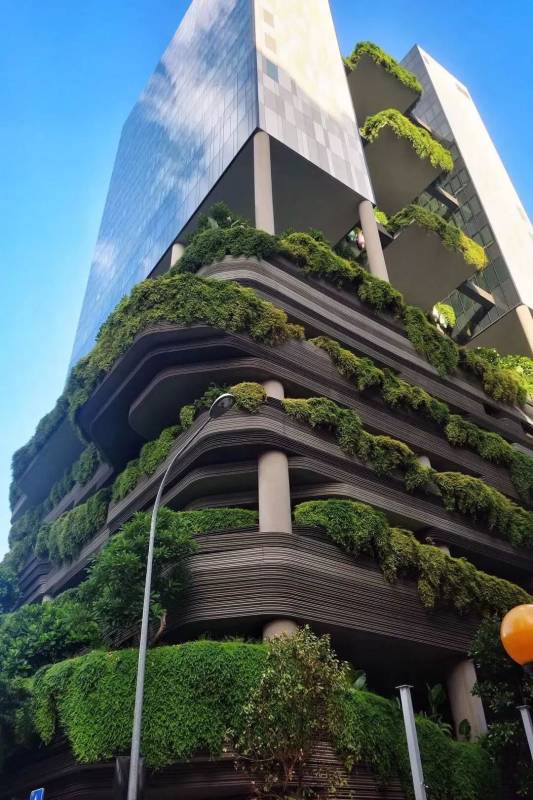 酒店存在于林立的钢筋水泥大厦之间,这独树一帜的绿又像极了纵向花园。