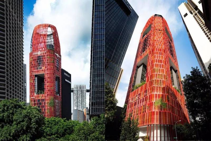 建筑是由奥雷·舍人设计, 即使是在建筑都很特立独行的新加坡,仍然显得动感十足。覆蓋在弧形立面外的是蜂窝网状遮阳系统,建筑内拥有多个公共空间。