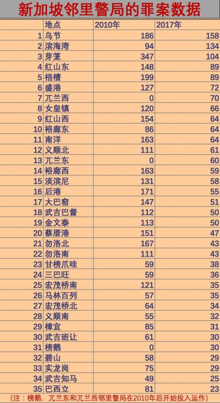 可以很明显地看出,在十年内新加坡大部分区域的罪案数量都减少了39%至74%不等,看来新加坡警方是真的在用心保护百姓~