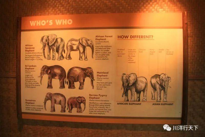 关于非洲草原象、非洲森林象和亚洲象亚种的介绍牌