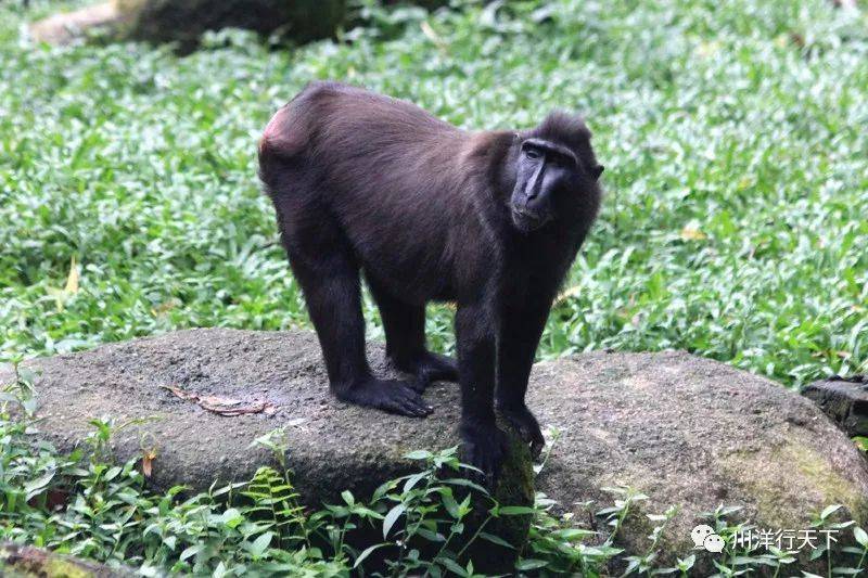 新加坡动物园中有个“灵长类王国”,这里生活着两种猴子。一种叫黑冠猕猴,长著一张黑脸和一只长长的鼻子,最特别的是头上还长著一撮竖起来的黑毛,感觉特别搞笑。