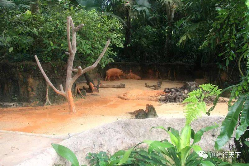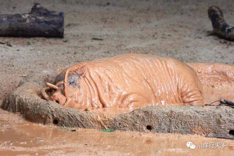 白虎展区对面有种奇特的猪,它们有四只长牙,有两只从嘴里伸出来,可是还有两只是从脸上穿出来的,挡在眼睛的前面,真不知道这几只牙会不会影响它们的视力?它们身上都滚满了泥浆,几乎都看不出来它们原本灰色的皮毛了。这里的气味实在是难闻,我看了一会儿就捂著鼻子跑开了。