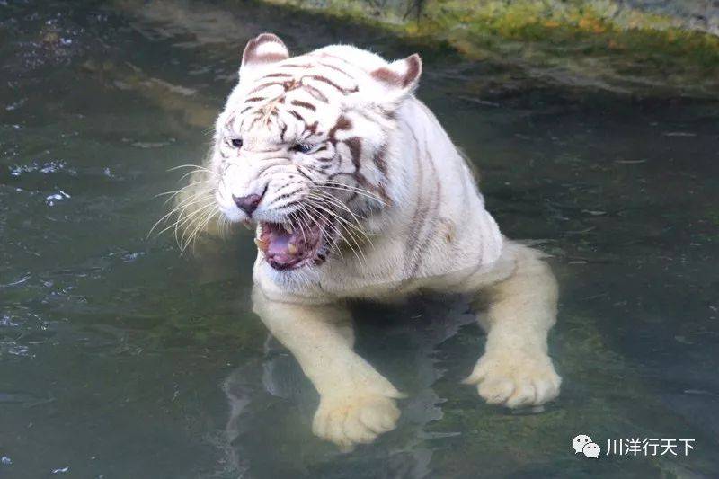 Tips: 白虎是孟加拉虎基因突变导致的一个变种,由于它们的毛色太过于明显,缺少保护色,所以很难在野外生存下去。尽管白虎在野外十分稀有,但现在国内外很多动物园都有人工繁殖的白虎展出。