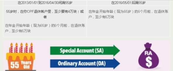 退休户头(RA):满55岁后,OA户头和SA户头的存款将转移到RA户头。