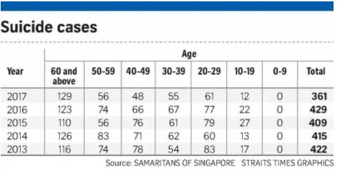 2017年,新加坡有129名60岁以上的年长者自杀,比2016年多了六人,创下1991年有记录以来的新高。