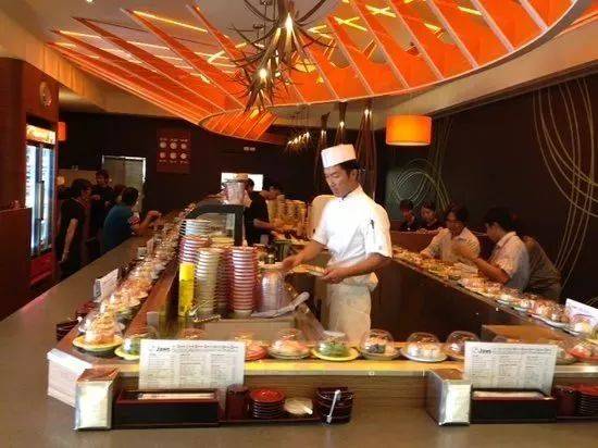 性价比挺高的一家旋转寿司店,既可以看着菜单点餐,也可以在转盘上自取。除了各种寿司和生鱼片,也可以点乌冬面或者盖饭,菜品种类很齐全。