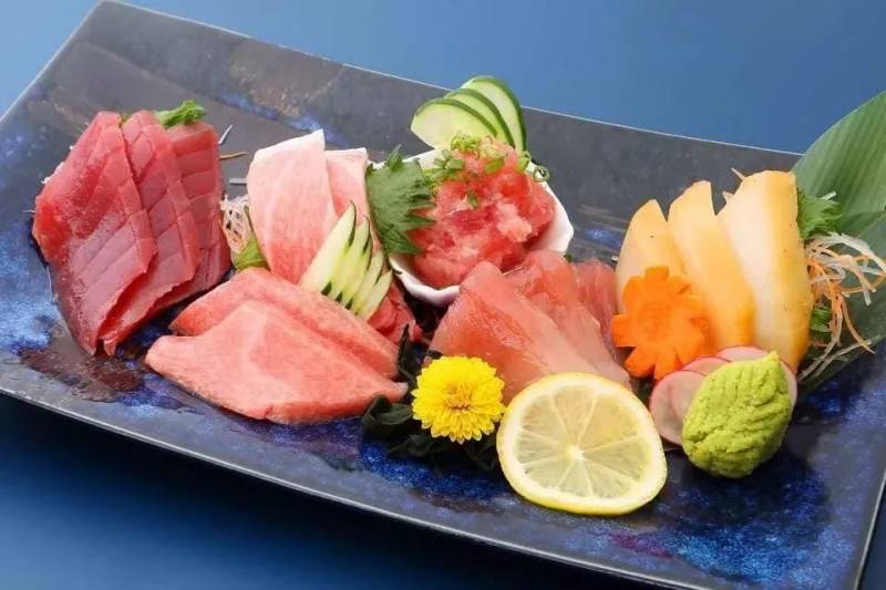 厨师会在食客面前演绎切刺身的过程,让食客看到制作刺身的步骤。短短6分钟内就将一整条吞拿鱼大卸八块。这些刺身都是从日本空运而来,保证了食材来源和新鲜度。喜欢吃寿司的食客们就别错过啦。