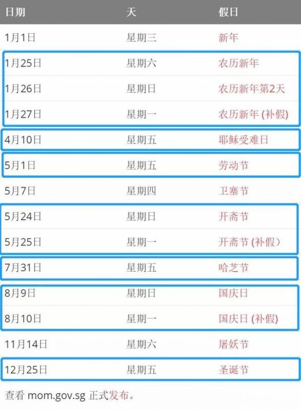 有人说,仔细一数请假攻略那张图,红色的年假日子有11个呢?新加坡员工的年假有这么多吗?