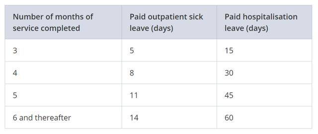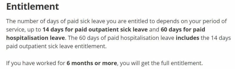 如果不幸生病了不要担心,只管看医生拿MC(medical certificate 假条)。新加坡政府规定只要你在该公司工作了6个月以上,你就享有14天的门诊病假,已经长达60天的住院假。