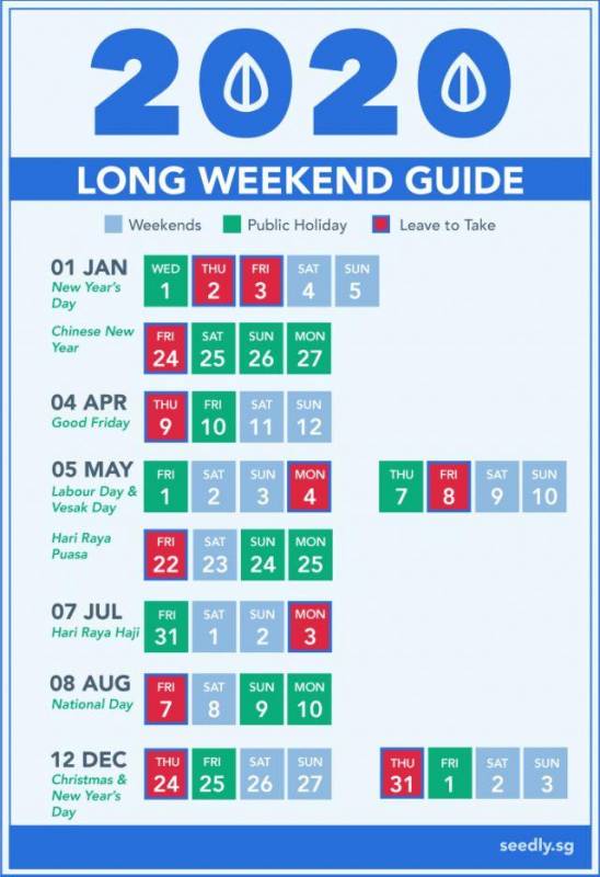 就算是不紧贴周末的假期,新加坡员工也可以灵活利用年假,制造小长假或者大长假。2020年公共假期表一出来,马上就有人做了”年假攻略“。