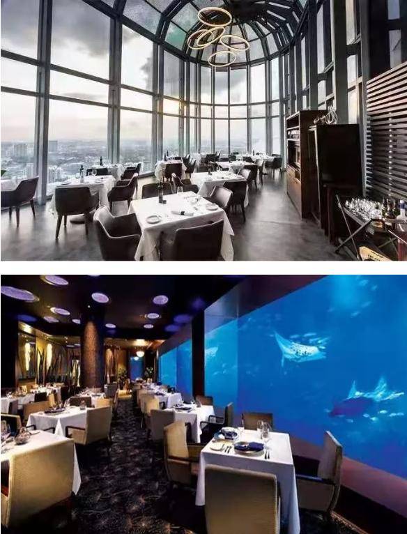 在滨海湾露台用餐感受来自海湾的微风;透过55层落地360度俯瞰新加坡;由教堂改造的餐厅,营造出爱丽丝梦游仙境的氛围;位于海洋馆的餐厅,巨型水族箱有海洋生物游来游去,这就是缤纷多样的新加坡。