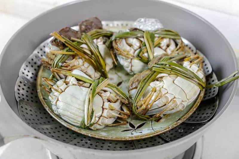 划重点:生蟹上锅,蟹底要朝上放在盘子中。这样可以防止蟹黄蟹膏漏出,也可以更有效地杀死细菌。