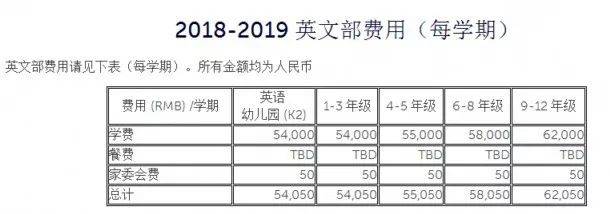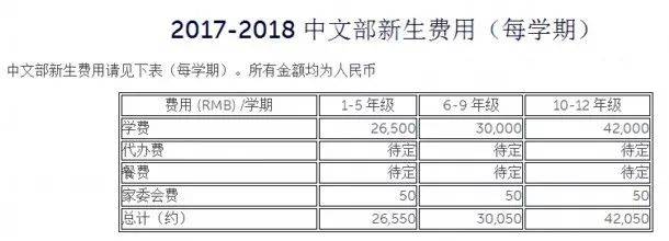 如果说因为英文部有外教所以学费高,可中文部的学费也很“贵族”,连小学每年都要五万以上: