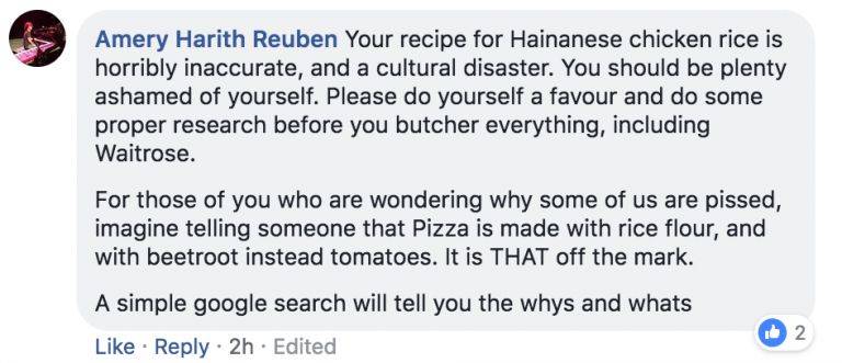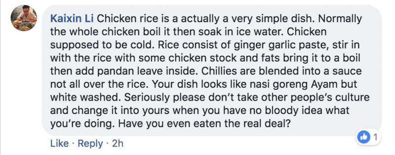 许多网友对这食谱提供的材料和烹煮步骤表示质疑,更是有网友直接说这盘鸡饭根本就不是所谓的海南鸡饭,还有网友留言解释做海南鸡饭的真正步骤。